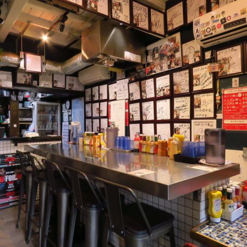 有名人のサインや写真がずらり。待ち時間も楽しめる、エンタメ感覚の空間。お一人様や少人数でのご利用も◎